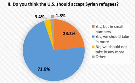 The overwhelming majority of UVA undergraduates—more than 90%—also believe that the government should accept more Syrian refugees, although a third of this group agreed only “in small numbers.”